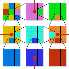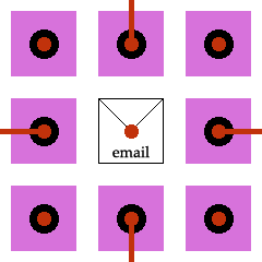 Each square can have graphics, photos, or text, and each square can be linked to another page with twelve more squares, and so on, ad infininitum.