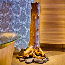 Peppé's art is inspired by "nature's line", and expresses the inner beauty of the tree hidden by the bark.